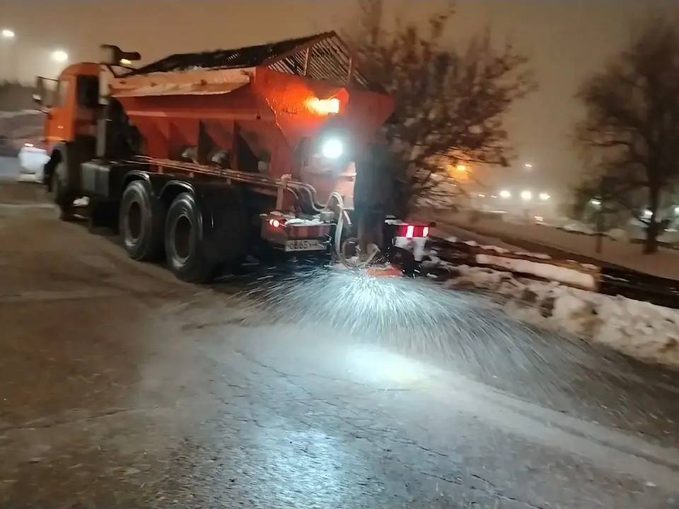 Коммунальные службы ведут расчистку и обработку противогололедными материалами проезжих частей и пешеходных зон. Особое внимание уделяется комплексной очистке территорий, прилегающих к остановочным павильонам и социальным объектам.