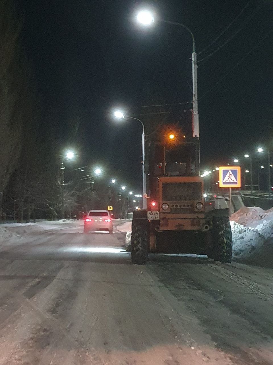 В связи с продолжающимися осадками цикл по сметанию снега с проезжей части будет повторяться до улучшения погодных условий.