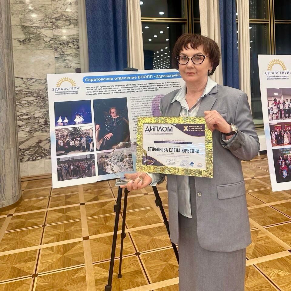 Главный врач Саратовской областной клинической больницы Елена Стифорова – лауреат X Всероссийской премии «Будем жить!» в номинации «Власть рука об руку с пациентом». Вручение премии состоялось 31 января в Государственном Кремлевском дворце при поддержке Совета Федерации РФ, Государственной Думы РФ и Министерства здравоохранения РФ в рамках Всемирного дня борьбы против рака.