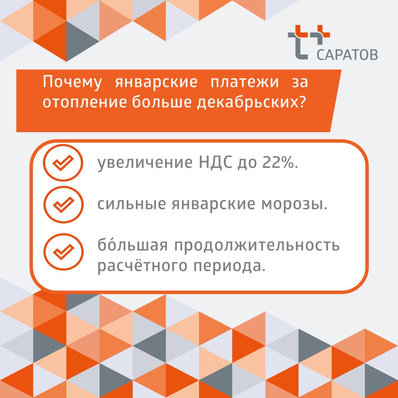 Почему суммы в январских платежках выше, чем в декабрьских? Что повлияло на начисления за отопление? Ответы на эти вопросы разместила компания "Т Плюс".