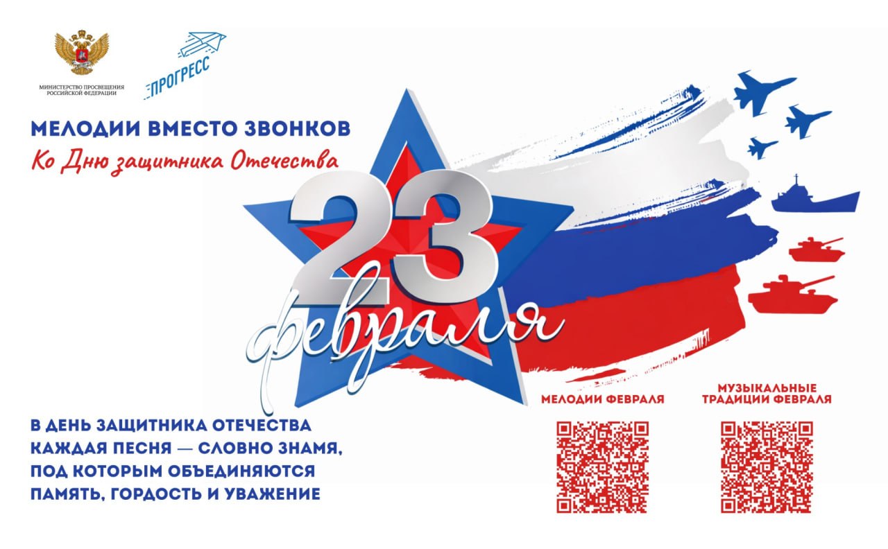 В феврале в рамках Всероссийского проекта Мелодии вместо звонков стандартные звонки в школах заменят музыкальные композиции, посвященные Дню защитника Отечества.