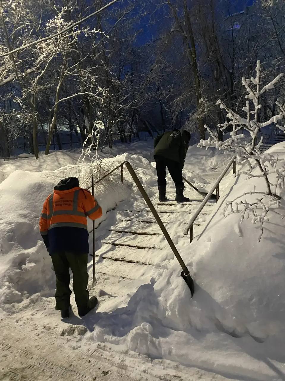 Коммунальные службы ведут расчистку и обработку противогололедными материалами проезжих частей и пешеходных зон. Особое внимание уделяется комплексной очистке территорий, прилегающих к остановочным павильонам и социальным объектам.