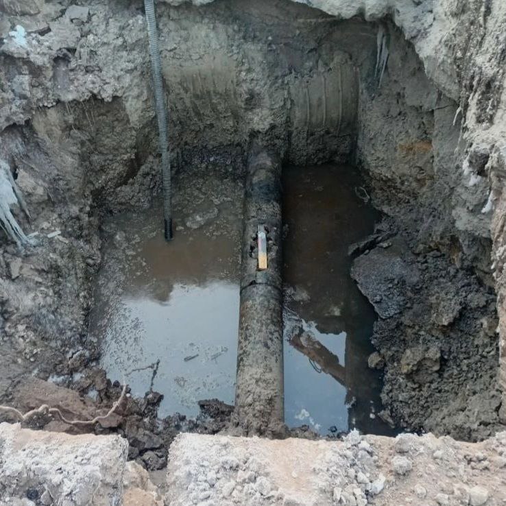 При производстве работ по проспекту 50 лет Октября, 110а специалистами предприятия было выявлено повреждение долевая лопина на чугунном трубопроводе d 300 мм. Принято решение о замене аварийного участка.