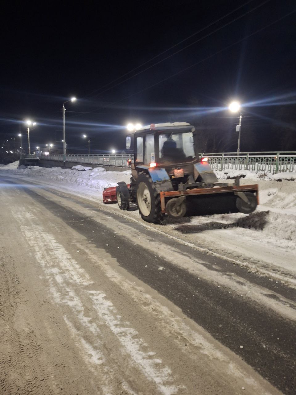 Сегодня ночью сотрудники Комбината благоустройства продолжили уборку дорог и тротуаров в центральной, заканальной и островной частях города. Работы по расширению дорог с помощью МТЗ-ротора проходили в центральной части города, по улице 30 лет Победы, на объездной дороге в 8а микрорайоне и Проезде Энергетиков. Кроме того, проводилась очистка пешеходных переходов на улицах Вокзальной, Шевченко, на развязке 1-го микрорайона.