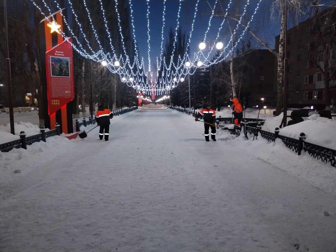 Сотрудники «Комбината благоустройства» очищают дороги и тротуары города Балаково от снега