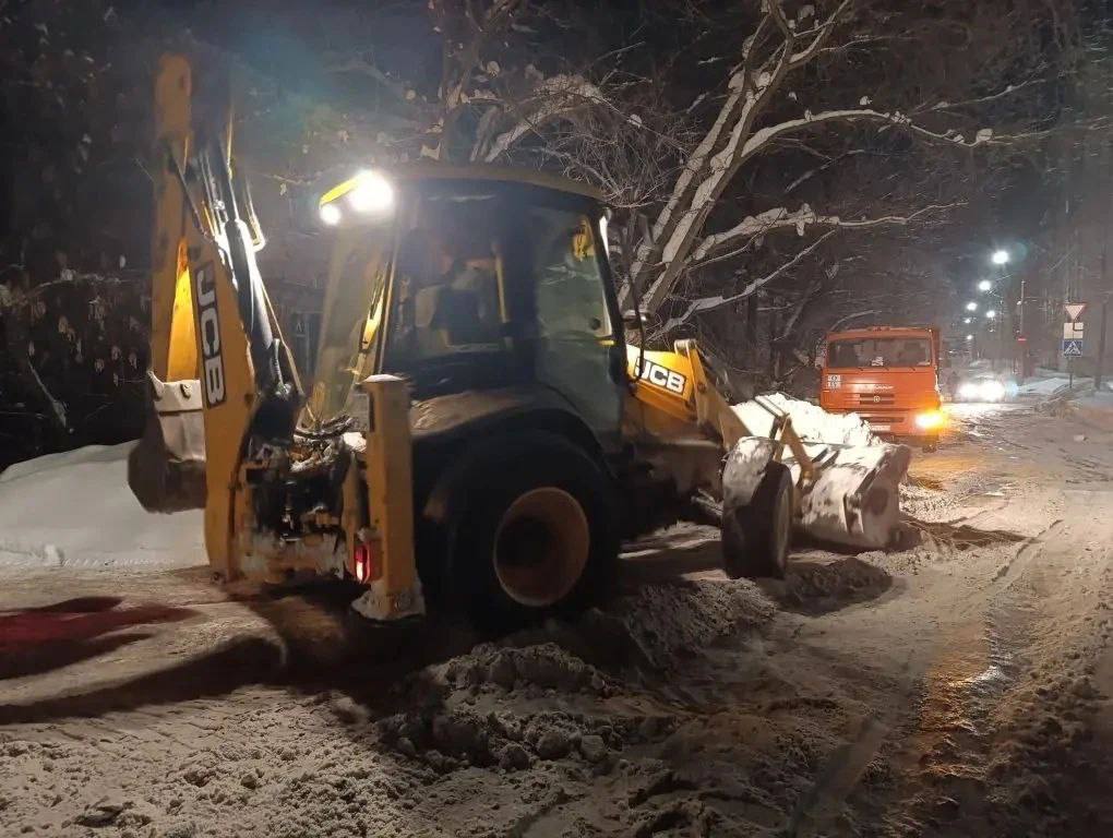 В течение ночи коммунальные службы города устраняли последствия снегопада