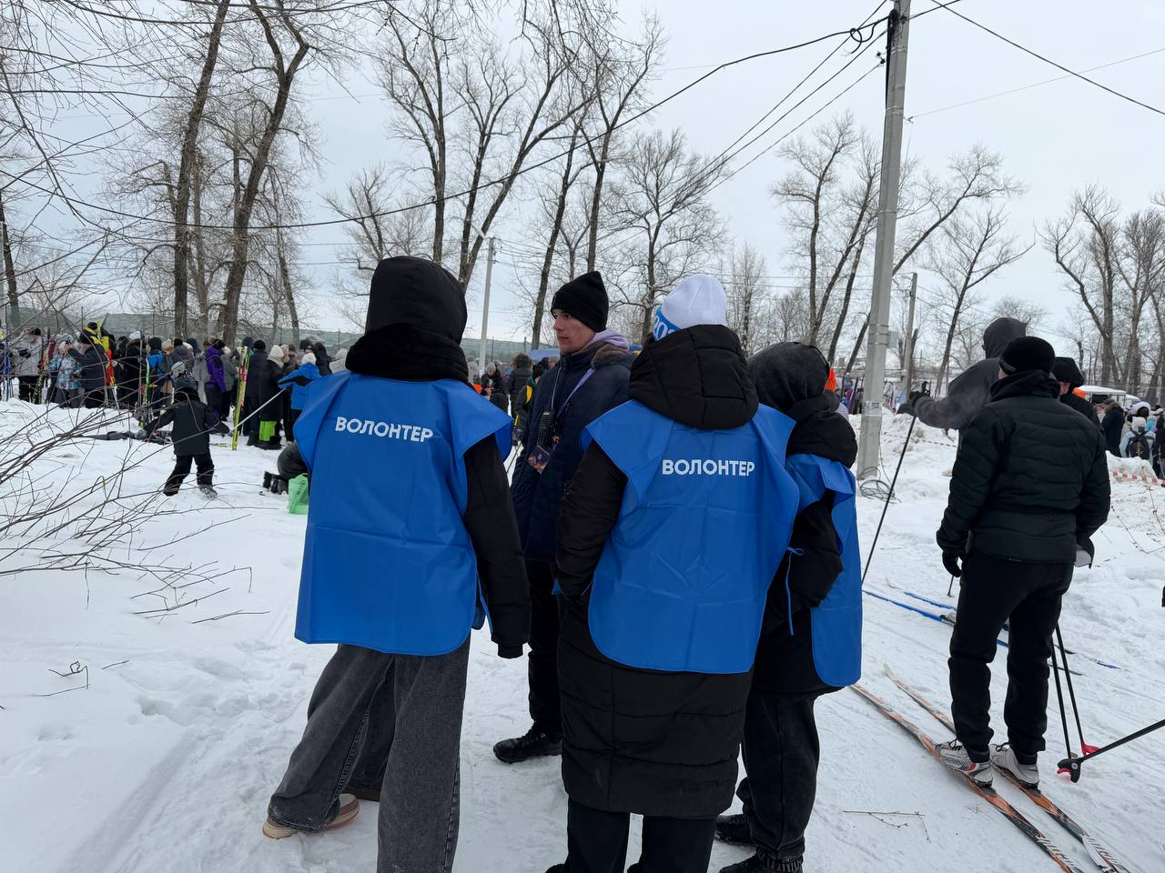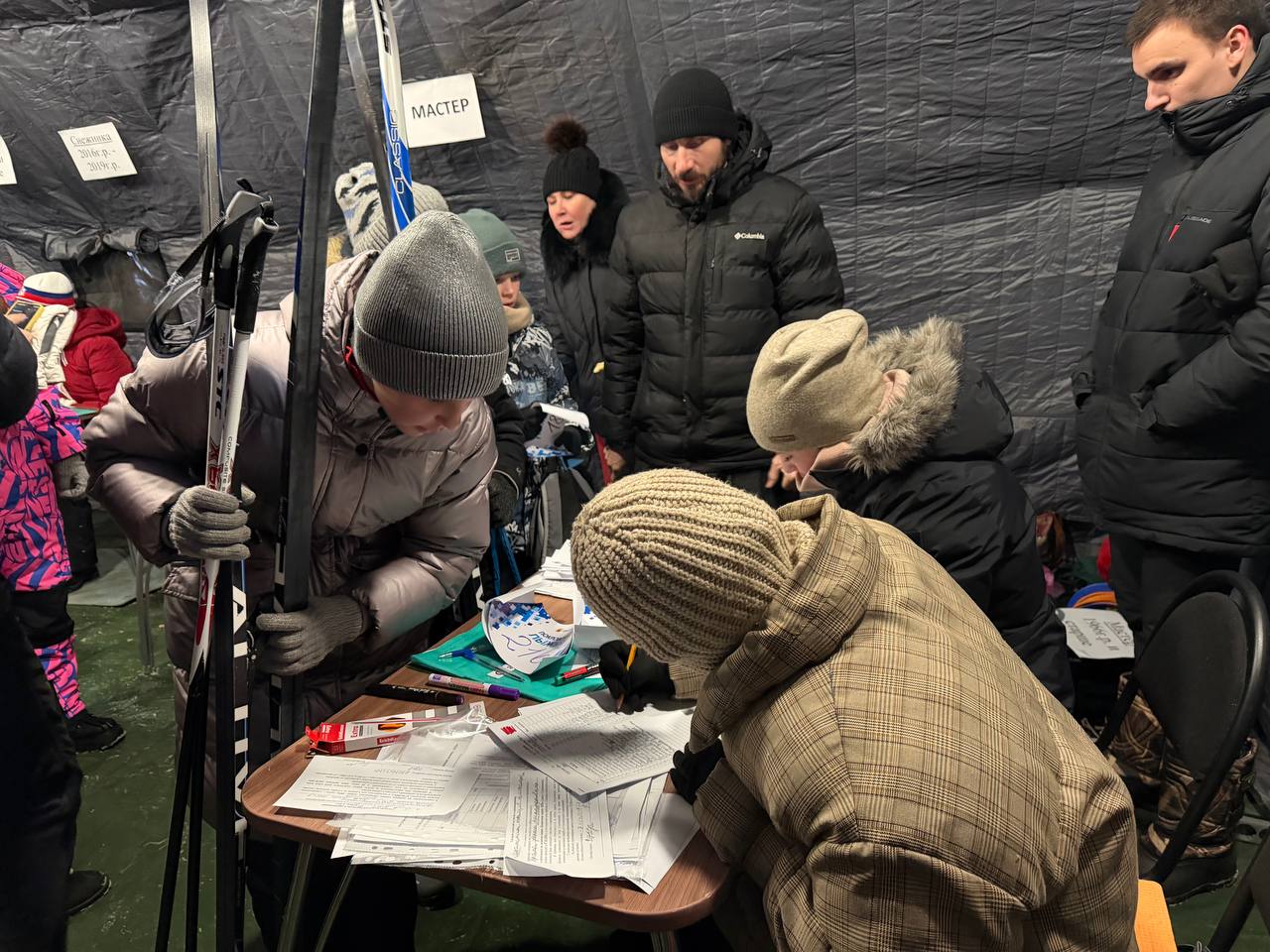 На территории работают развлекательные зоны с горячим чаем и угощениями. Помощь в регистрации оказывают волонтеры.