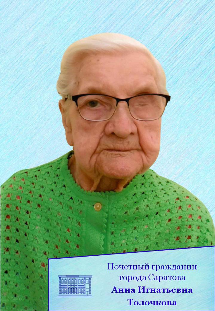 Сегодня День рождения отмечает Почетный гражданин муниципального образования «Город Саратов» Анна Игнатьевна Толочкова