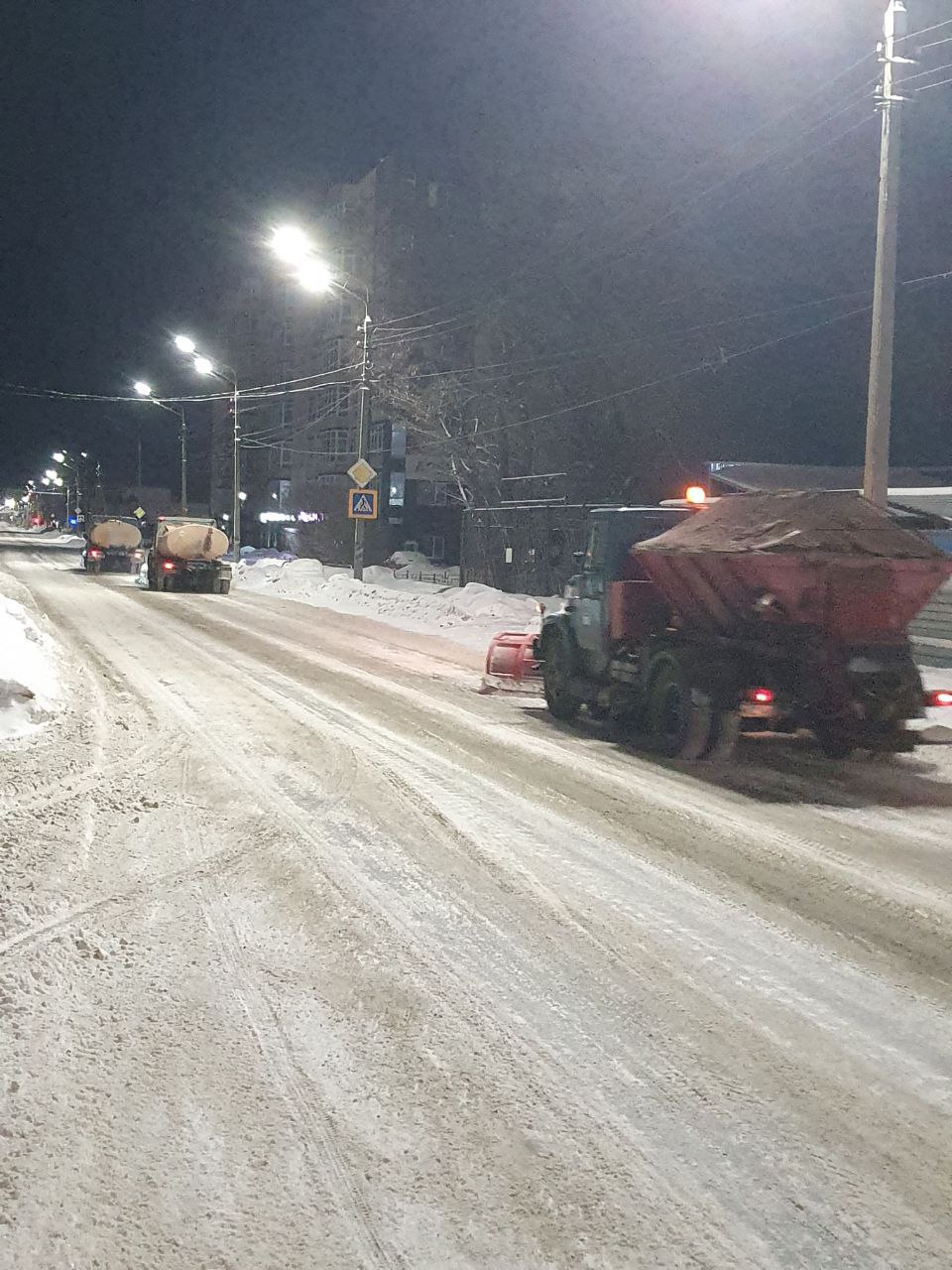 В настоящее время проводится расчистка и обработка противогололедными материалами автомагистралей, пешеходных зон и общественных территорий.
