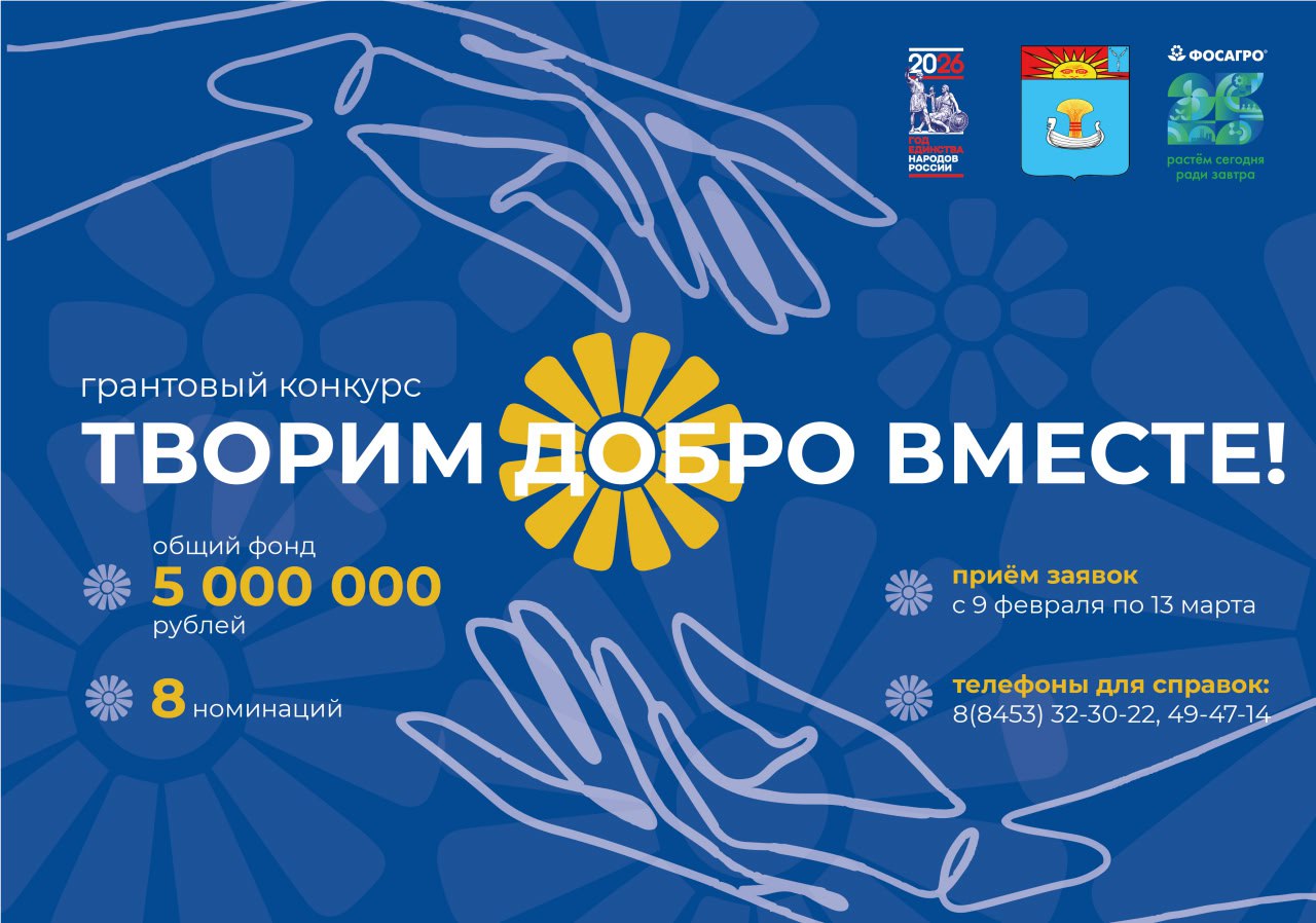 Сегодня, 9 февраля, стартует сбор заявок на участие в грантовом конкурсе «Творим добро вместе».