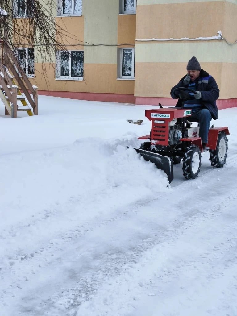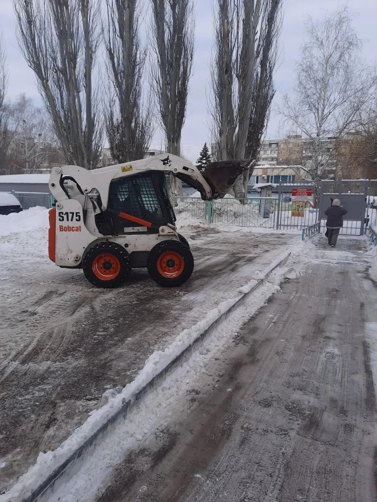 Сотрудники образовательных организаций продолжают чистить снег на территориях. Расчищают снежные массы на подходах к зданиям, дорожках. Проводят обработку противогололедными материалами.
