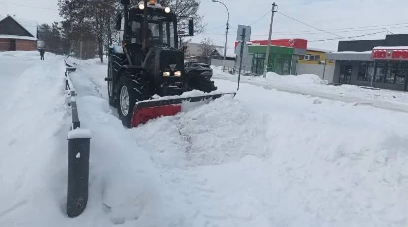 В первую очередь убирают снег на подъездах к сельским поселениям, подходах к учреждениям социальной сферы и остановочным павильонам, а также основных внутрипоселковых дорогах.