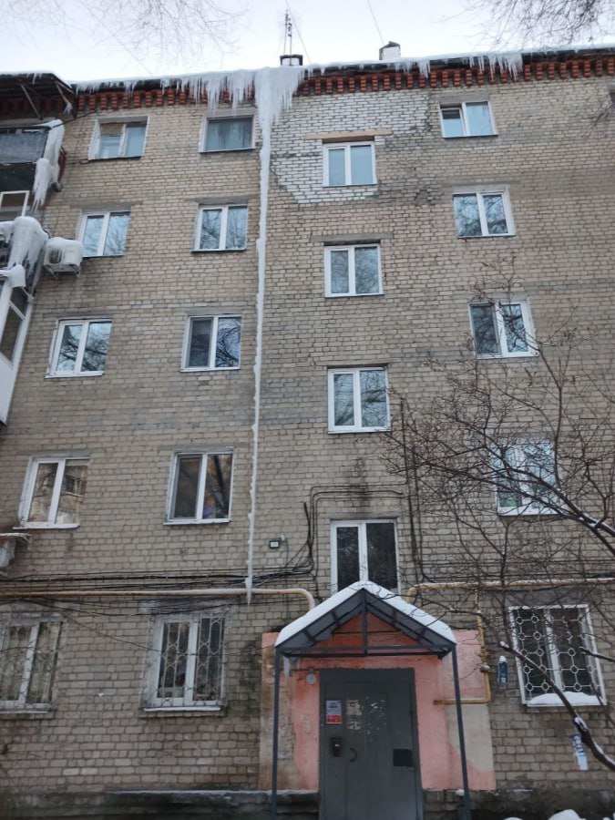 Как всегда, никому нет дела, висит огромнейшая сосулька, образовалась из-за течи с крыши. Непонятно, но течет, как будто что-то прорвало, сообщает автор поста.