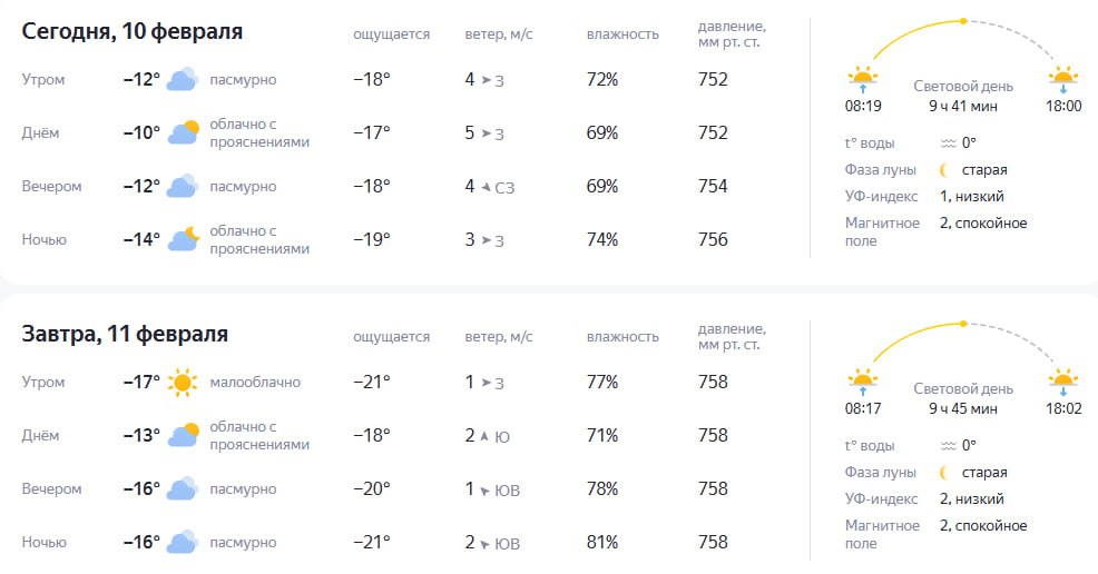 Сегодня световой день составляет 9 часов и 41 минуту. Уже завтра, согласно данным Яндекс погоды, он увеличится на 4 минуты.