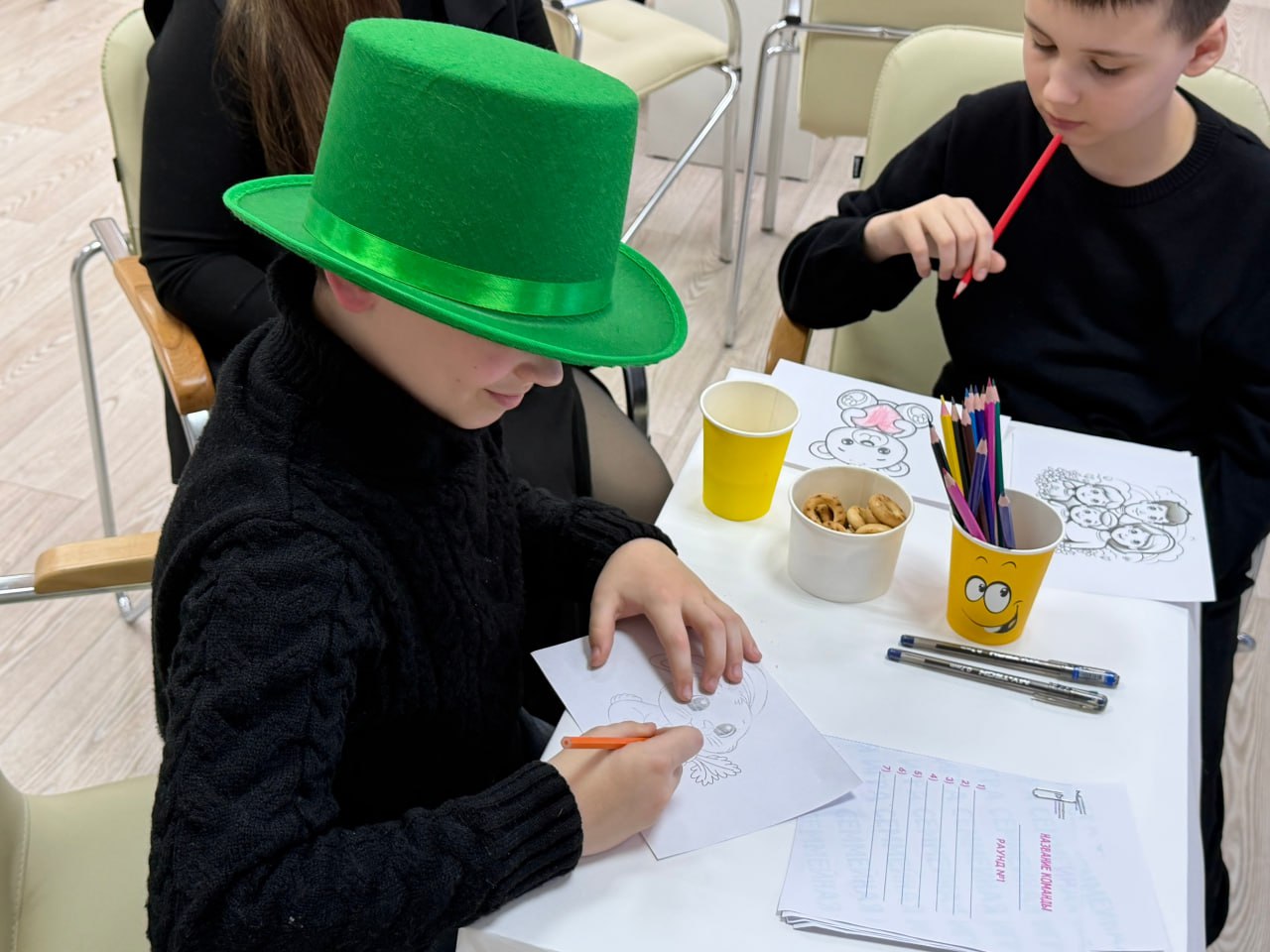 Во время перерывов игроки приняли участие в зажигательной танцевальной разминке, разукрасили любимых героев мультфильмов и угостились горячим чаем со сладостями. В конце игры у каждого гостя была возможность создать свой уникальный рисунок и перенести его на значок, сделанный своими руками.