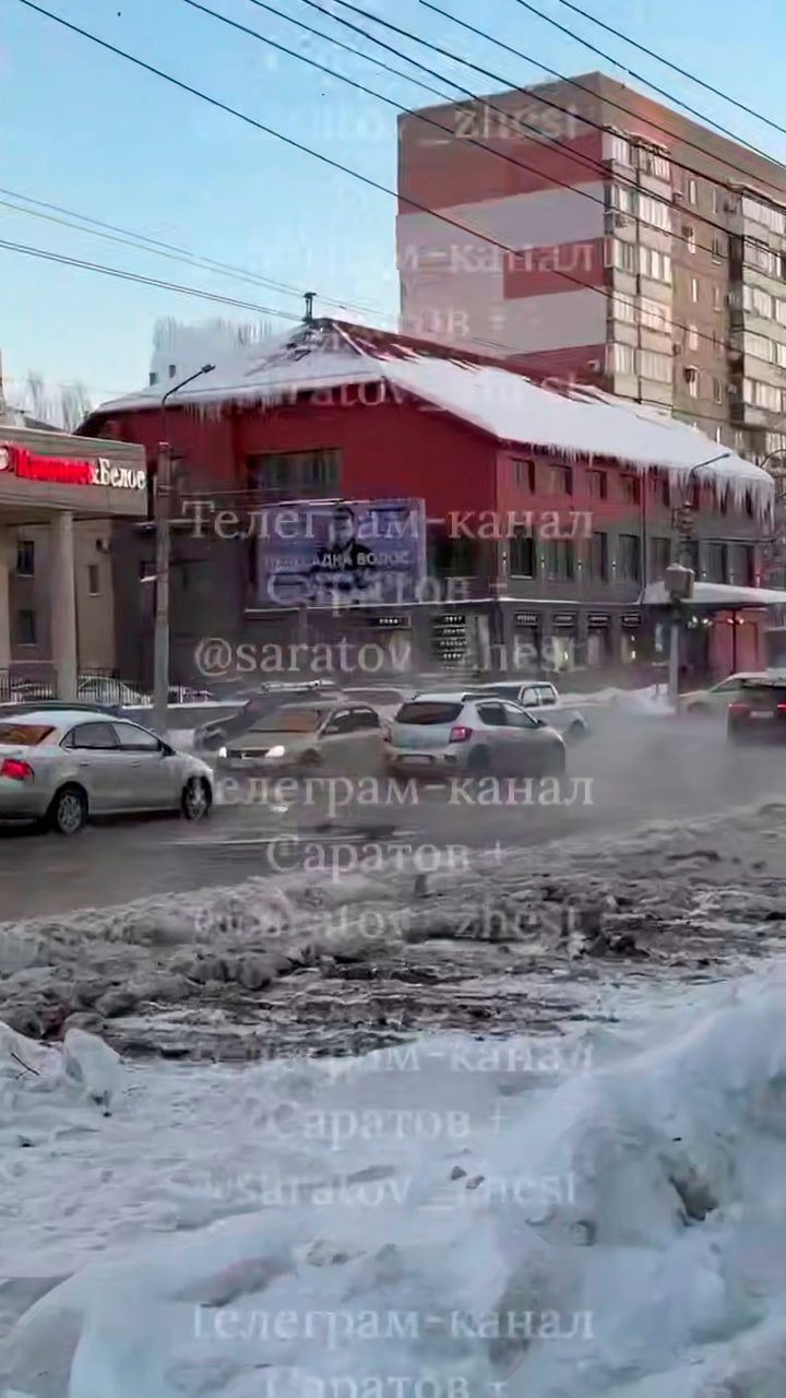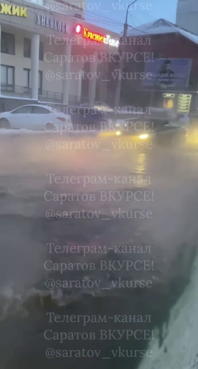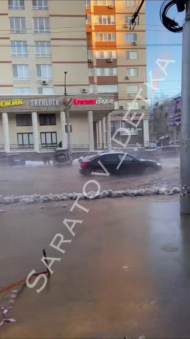 В центре Саратова из-за аварии водой затопило несколько улиц, образовались гигантские пробки. Судя по комментариям людей в социальных сетях, порыв возник недалеко от Городского парка.