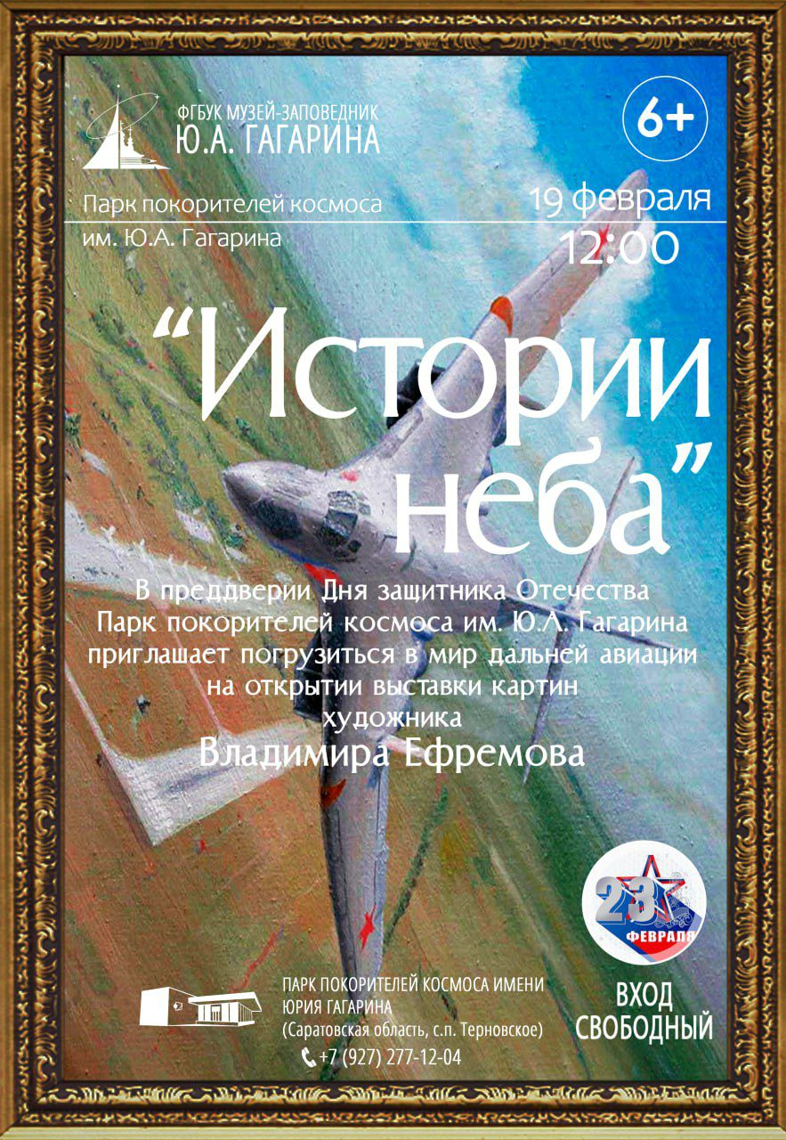 С 19 февраля в информационном центре парка откроется захватывающий мир российской авиации. Будет представлена выставка картин художника Владимира Ефремова — «Истории неба».