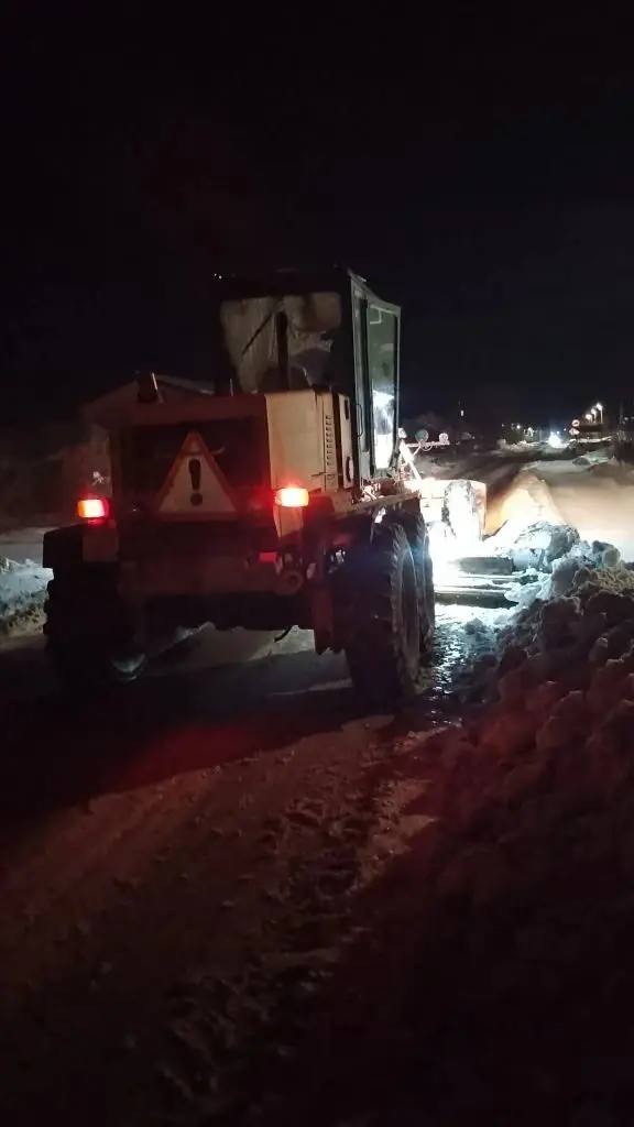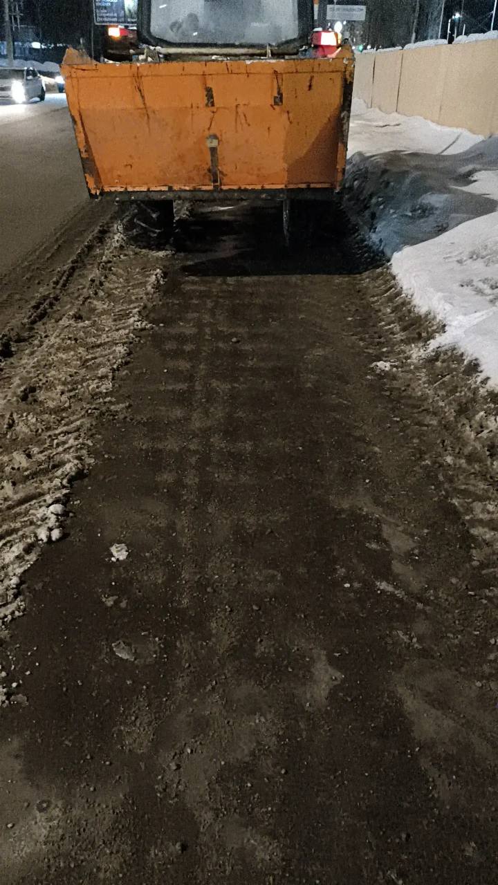 Параллельно, для улучшения транспортной ситуации и расширения проезжей части, с помощью грейдера были проведены работы по срезу снежного покрова на улицах: