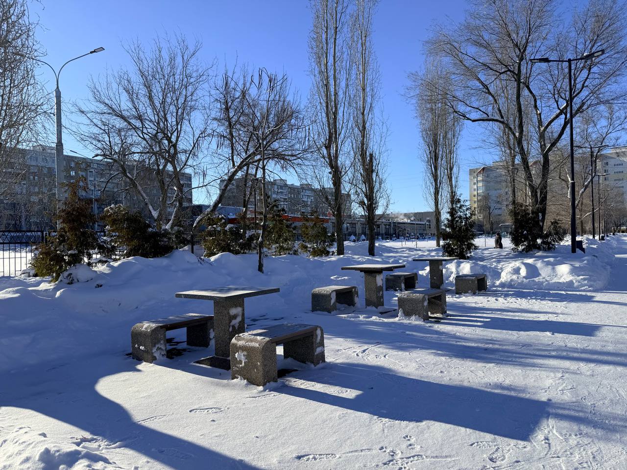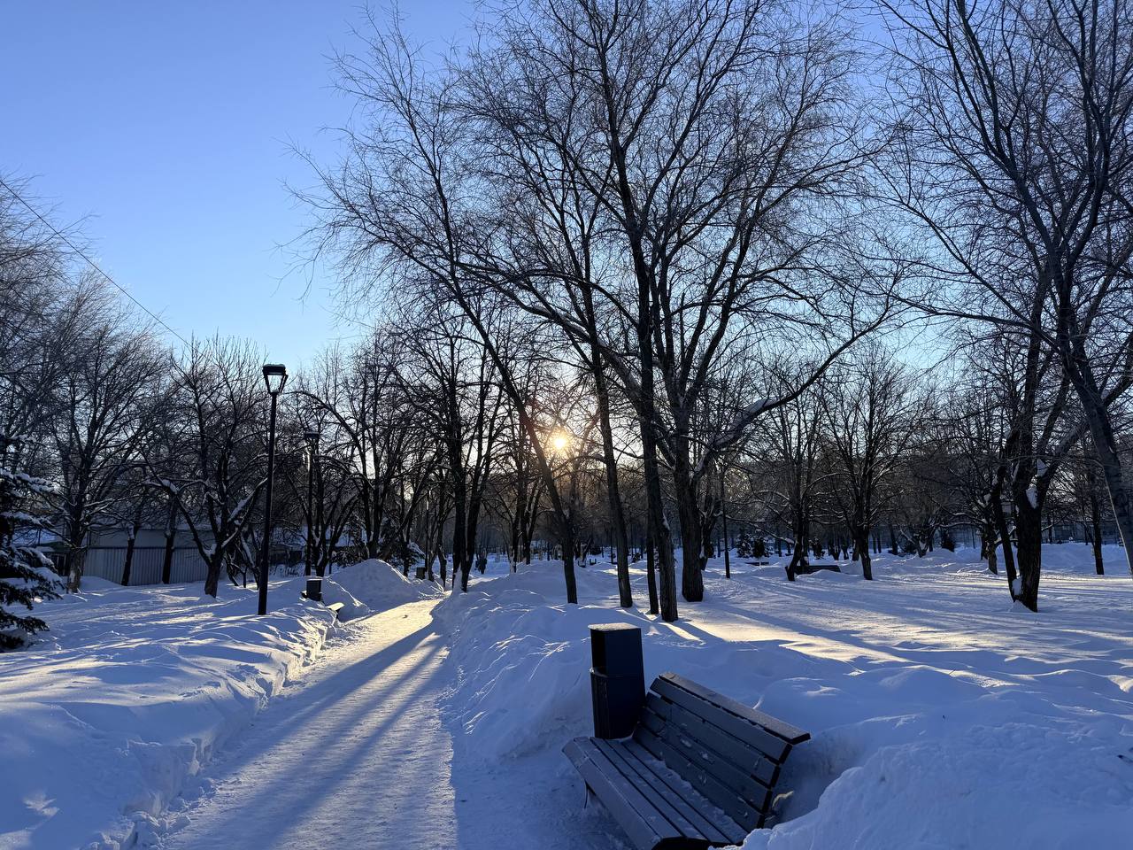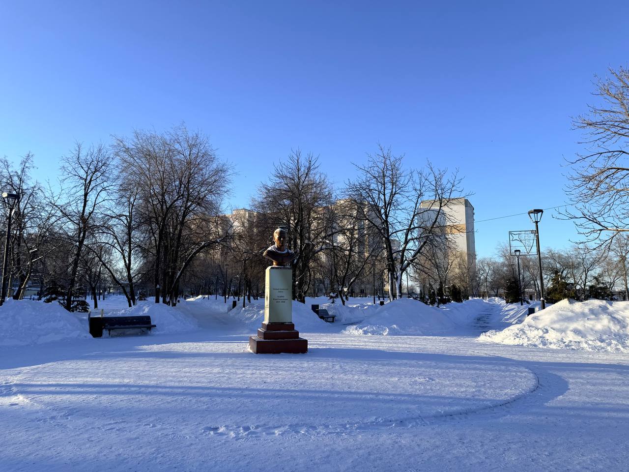 Спокойное морозное утро в сквере им. Ю.А. Гагарина. Под ногами хрустит снежок, а солнечные лучи согревают лица прохожих