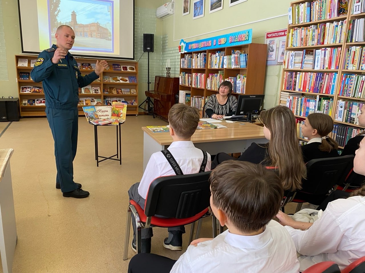Затем слово взял Геннадий Долотин, сотрудник 21-пожарной части города Балакова, который регулярно приходит в библиотеку для профилактических встреч с детьми и подростками, проводит с ними познавательные теоретические и практические занятия.