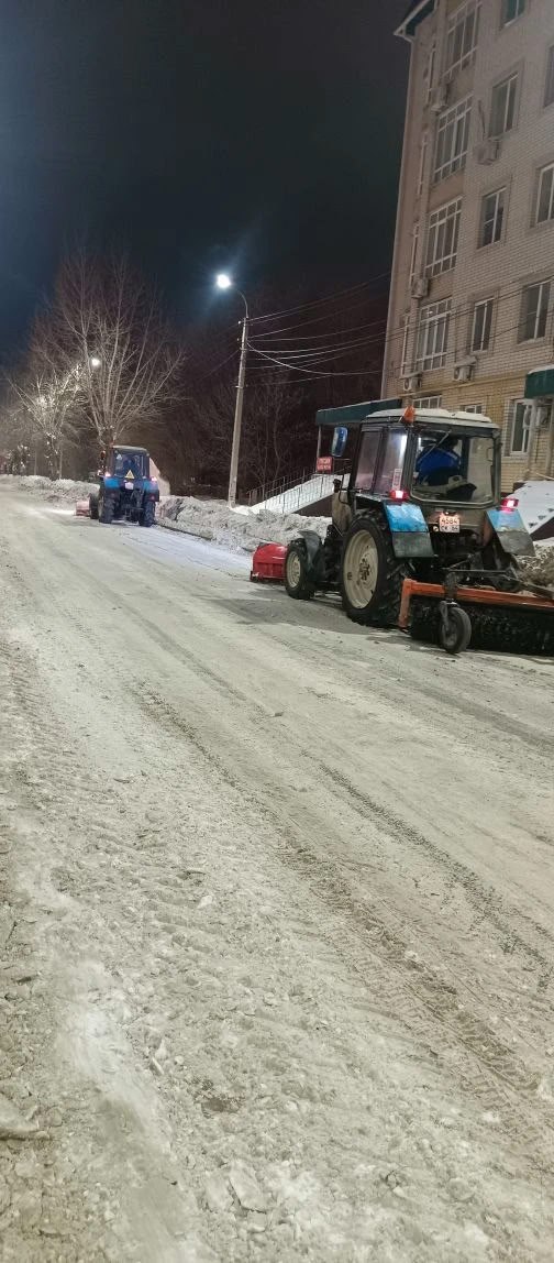 Сотрудники «Комбината благоустройства» очищают дороги и тротуары города Балаково от снега