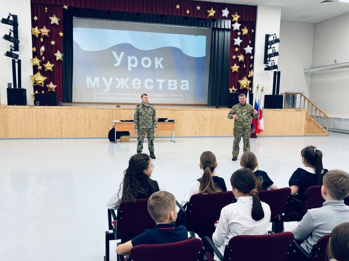 В школах состоялись встречи с участниками специальной военной операции, ветеранами боевых действий и представителями патриотических организаций. Почетные гости поделились с ребятами воспоминаниями о службе, рассказали о боевом братстве, взаимовыручке и верности воинскому долгу.