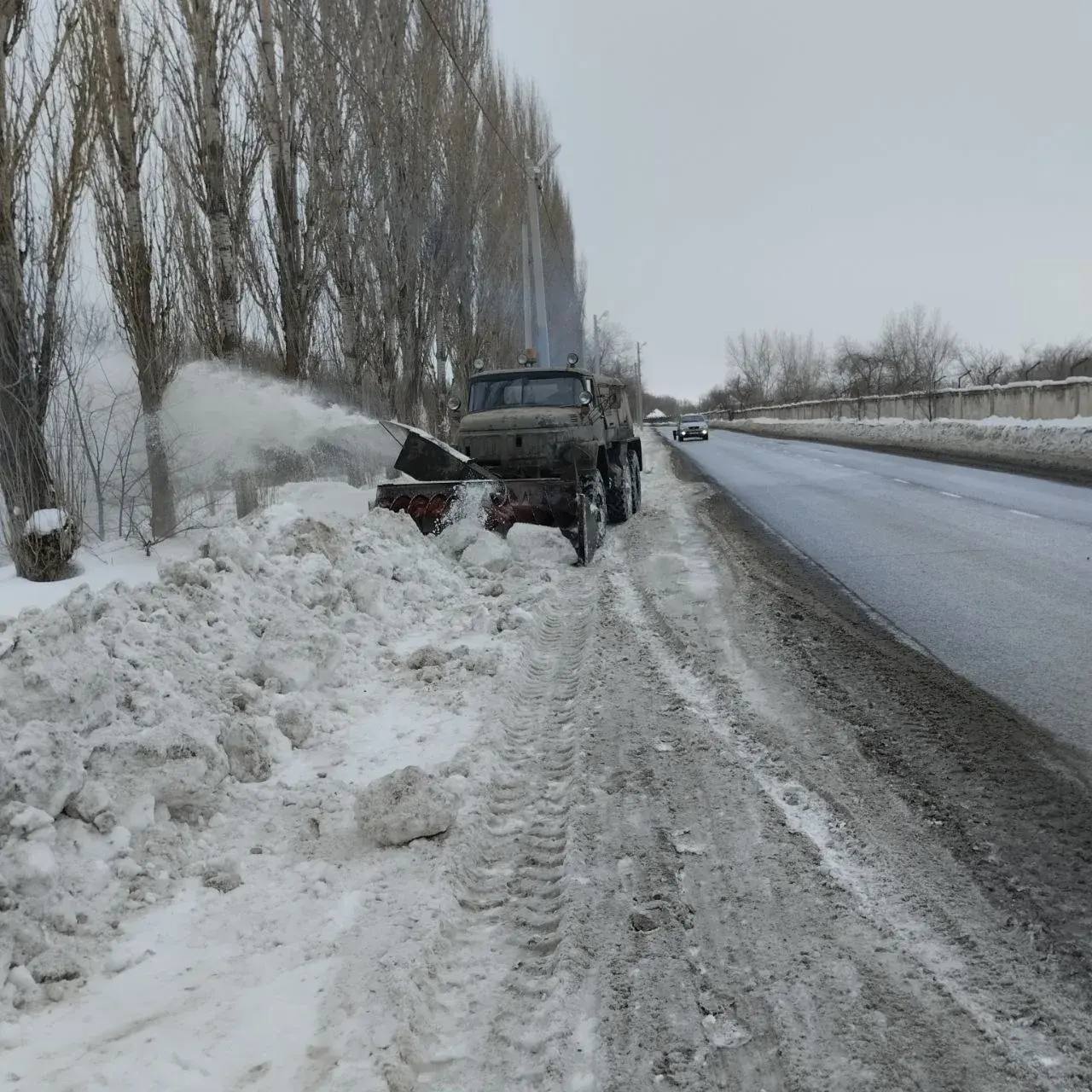 Параллельно с зимним содержанием дорог выполнялись работы по покосу камыша.