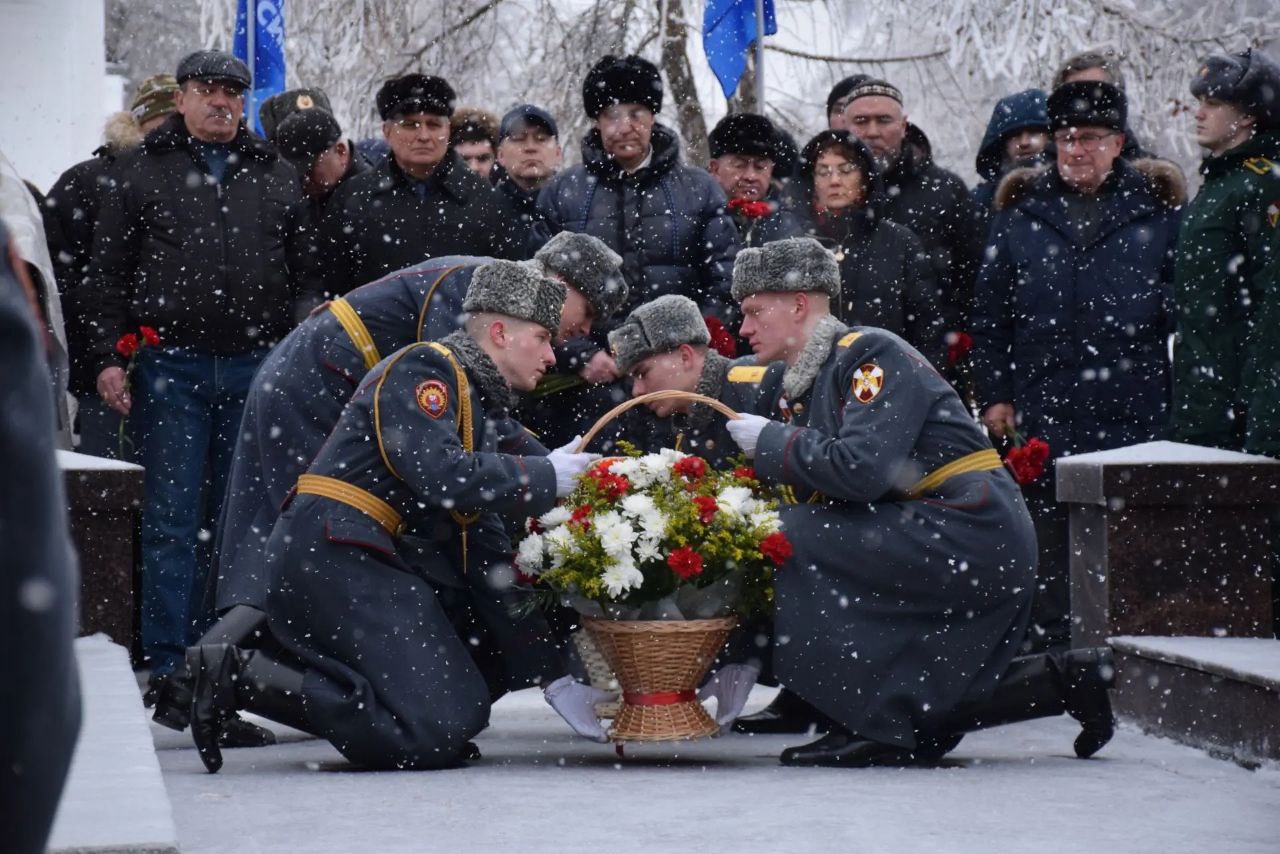 Собравшиеся почтили память воинов-интернационалистов минутой молчания и возложили цветы к мемориалу «Землякам, погибшим в локальных войнах».