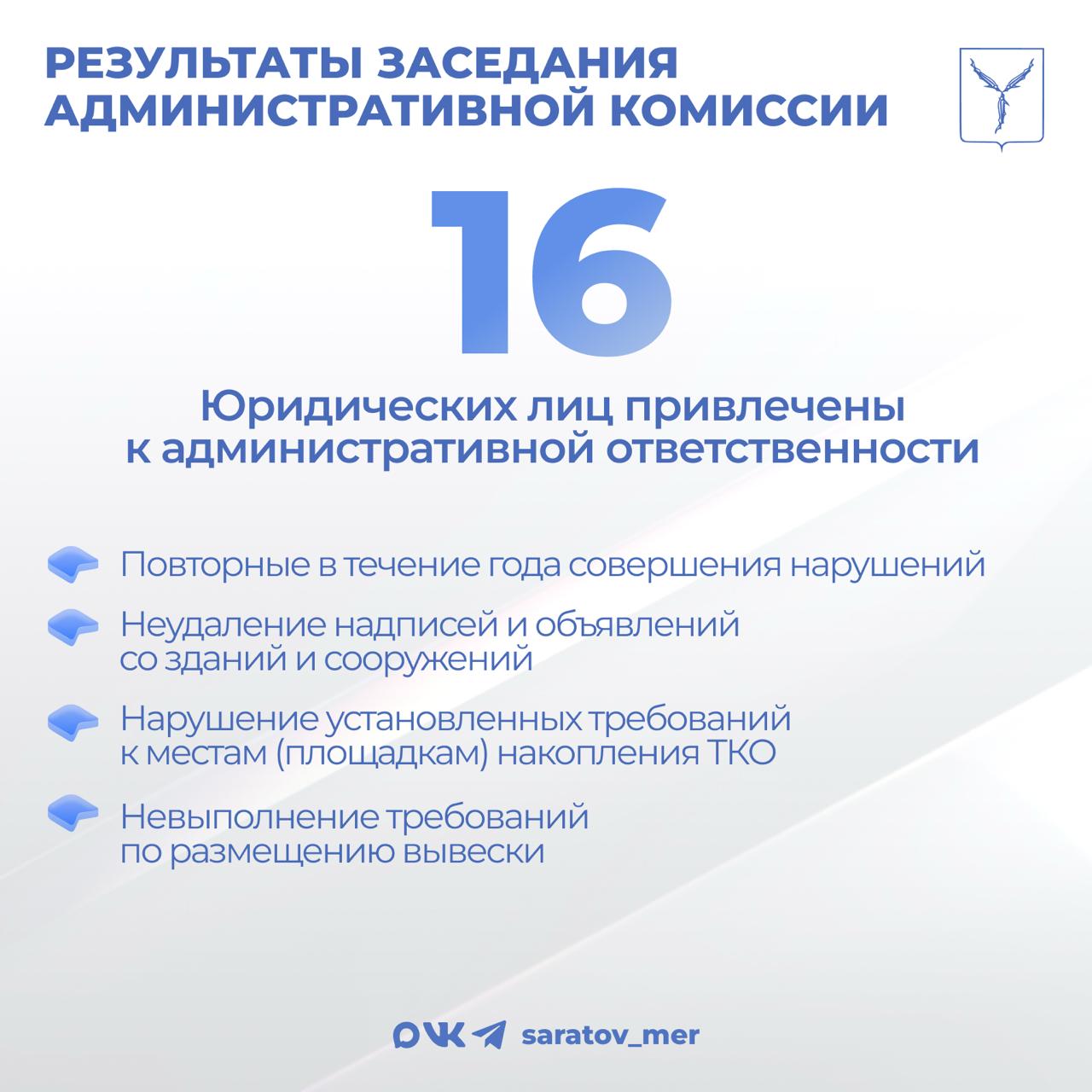 Состоялось очередное заседание административной комиссии муниципального образования «Город Саратов», в ходе которого было рассмотрено 153 дела