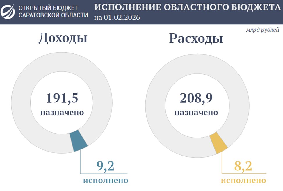 По предварительным данным, исполнение областного бюджета на 1 февраля 2026 года сложилось в следующих объемах: