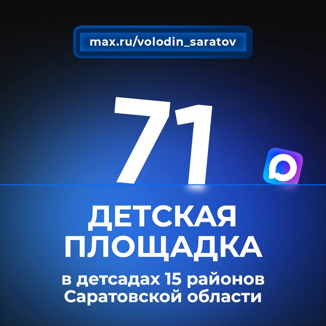 в ЭТОМ году 71 игровая площадка будет установлена в 15 районов Саратовской области. РЕШЕНИЕ НАЙДЕНО.