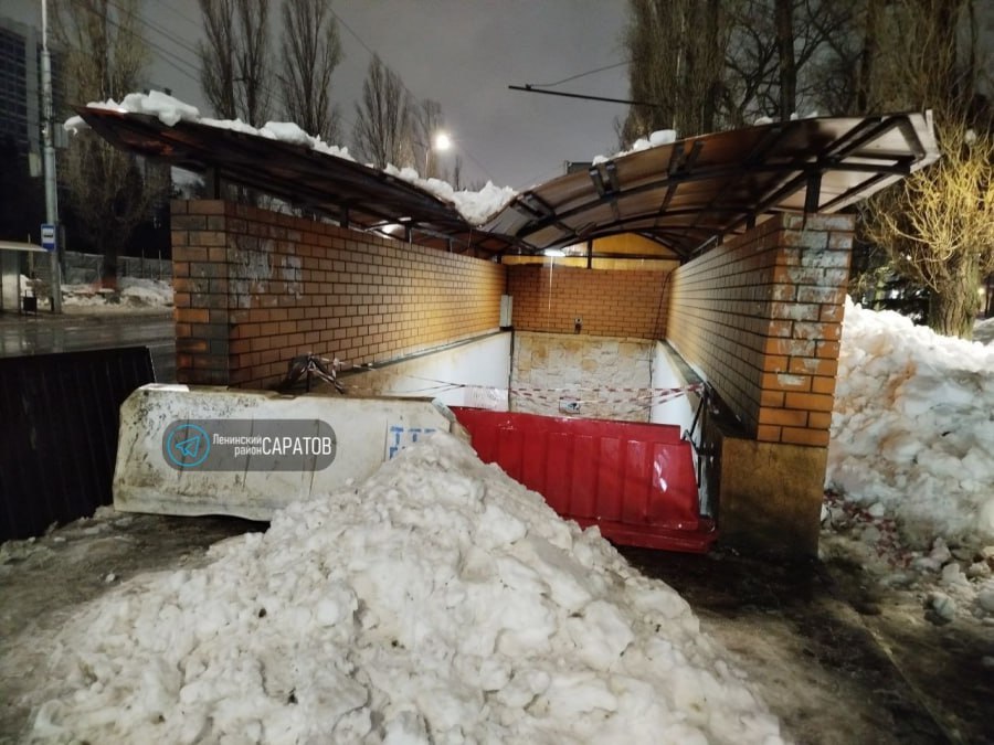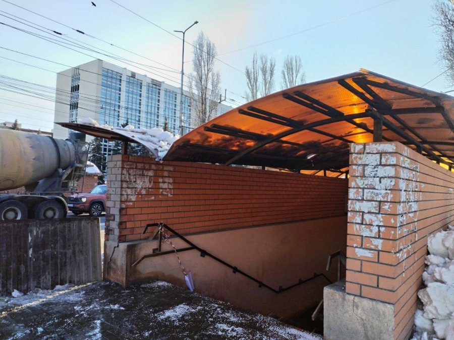 В Ленинском районе Саратова у подземного перехода под тяжестью снега погнуло пластиковую крышу. Этот переход капитально отремонтировали три года назад.