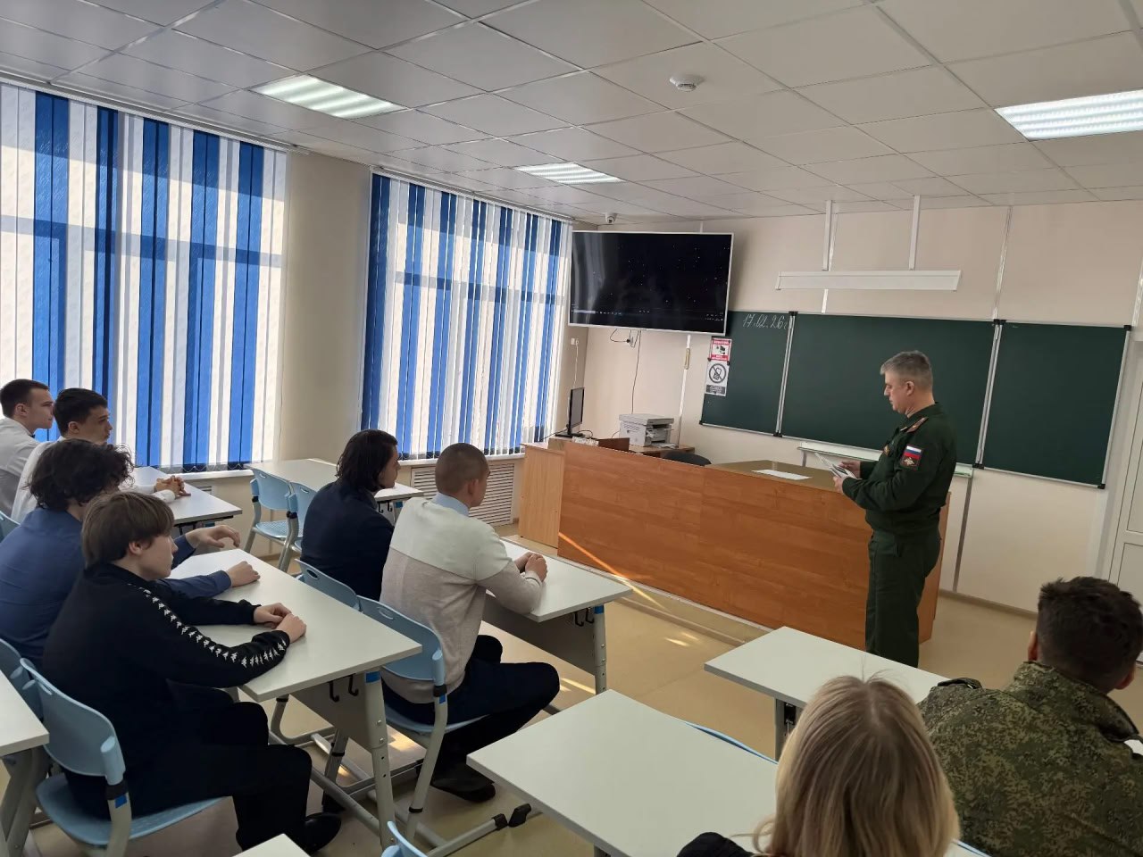 17 февраля 2026 года на базе муниципального автономного общеобразовательного учреждения «Средняя общеобразовательная школа №13» города Балаково состоялось профориентационное мероприятие для учащихся выпускных классов. Гостями встречи стали представители Федерального государственного казенного военного образовательного учреждения высшего образования «Вольский военный институт материального обеспечения» Министерства обороны Российской Федерации, которые провели презентацию своего учебного заведения для будущих абитуриентов из МАОУ СОШ №11, МАОУ СОШ №13 и МАОУ СОШ №18.