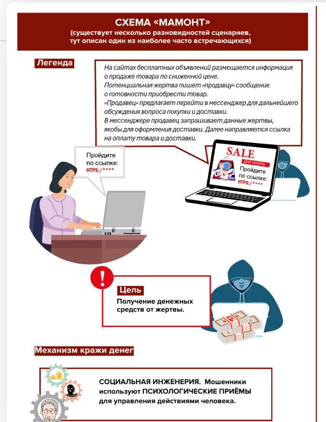 Как избежать обмана: не попадитесь на уловку «мамонта». Существует несколько разновидностей сценариев, в карточках описан один из самых распространенных.