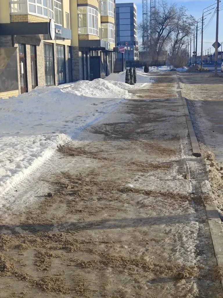 «Комбинат благоустройства» продолжает посыпать дороги и тротуары пескосоляной смесью