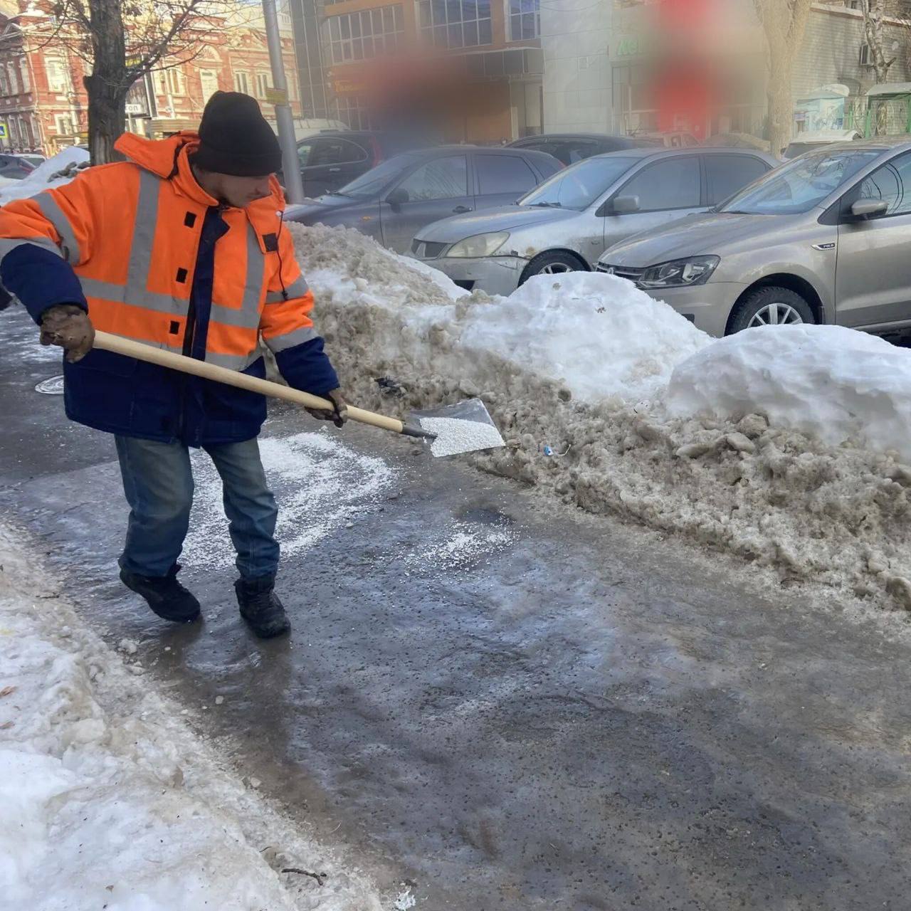Коммунальные службы Саратова, Энгельса и Балаково проводят комплексные работы по уборке наледи и противогололедной обработке территорий