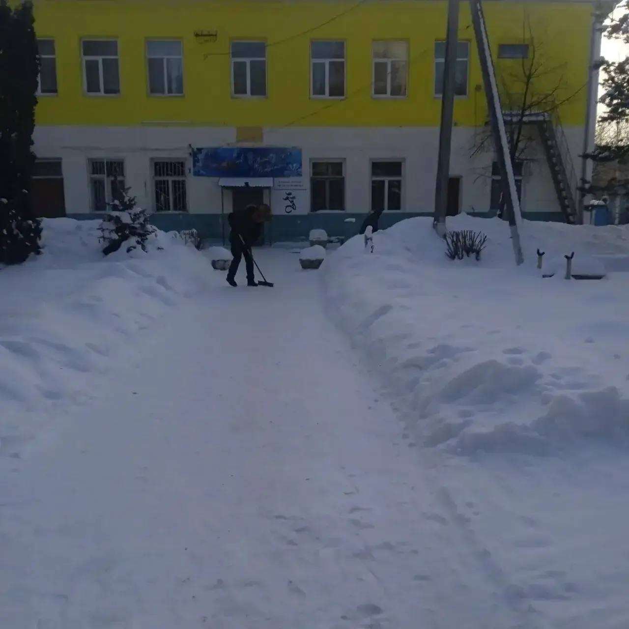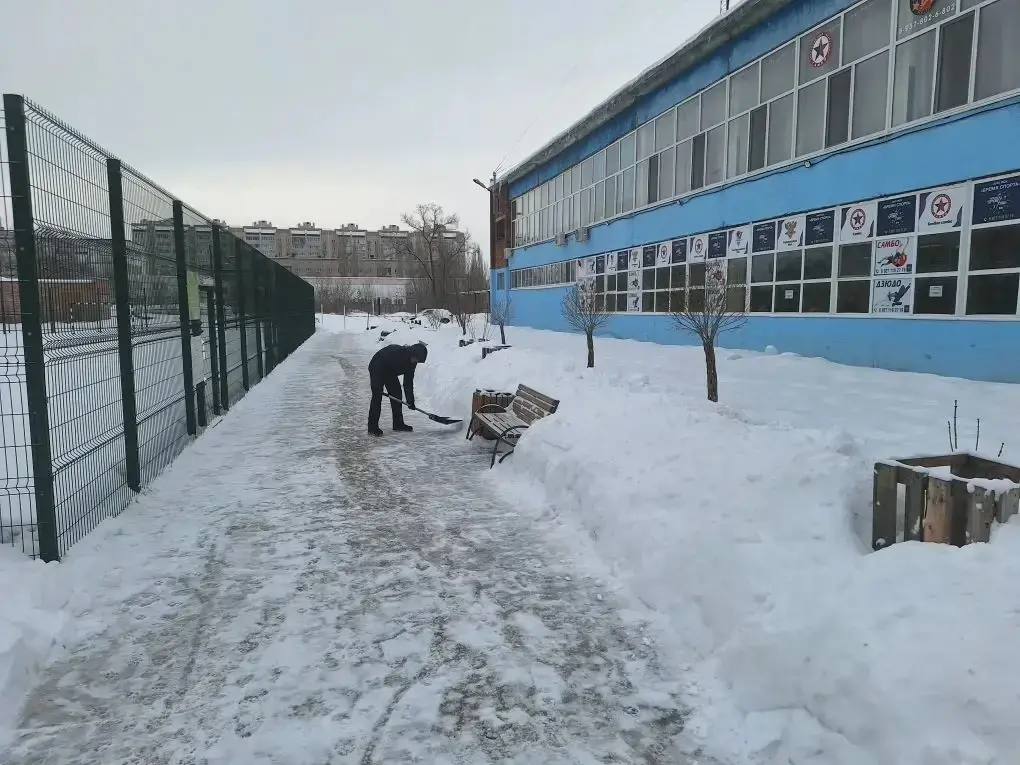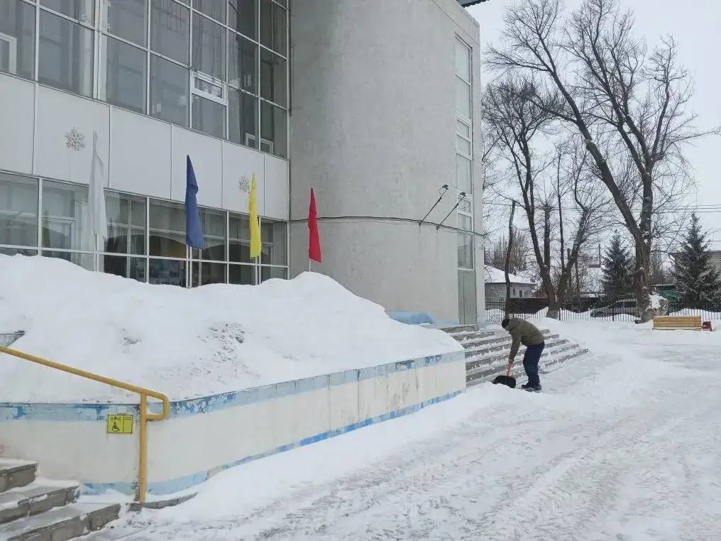 Сотрудники учреждений спорта и молодежной политики продолжают расчистку территорий от снега.