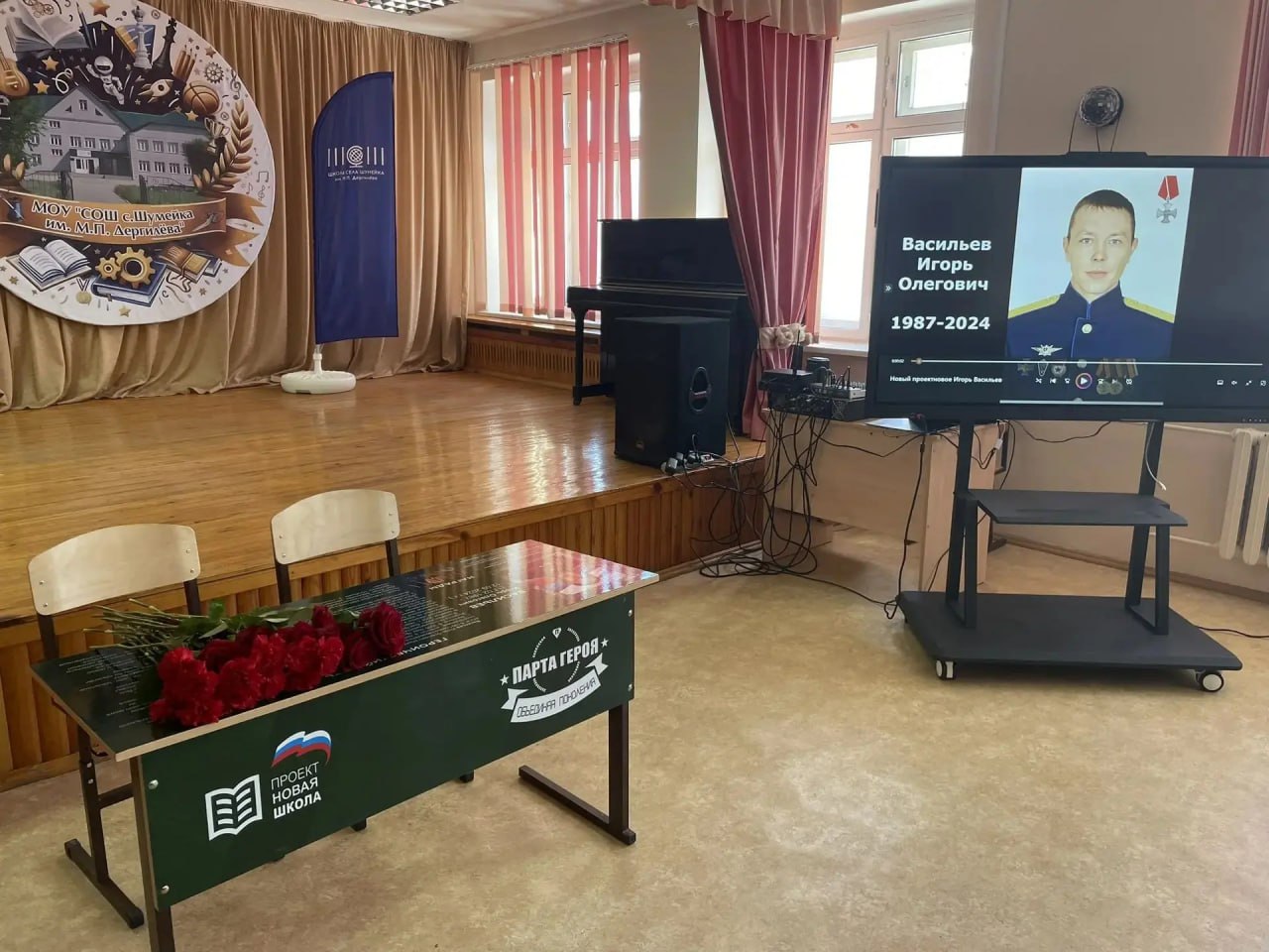 В школе с. Шумейка им. М.П. Дергилёва состоялось открытие «Парты Героя», посвященное выпускнику 2002 года Васильеву Игорю Олеговичу, участнику специальной военной операции. Право открытия представили дочерям героя Юлии и Елизавете. Первыми сели за «Парту Героя» отличники учебы, активные участники школьной жизни - ученик 7а класса Лежнев Артем и ученица 3 класса Лежнева Полина.