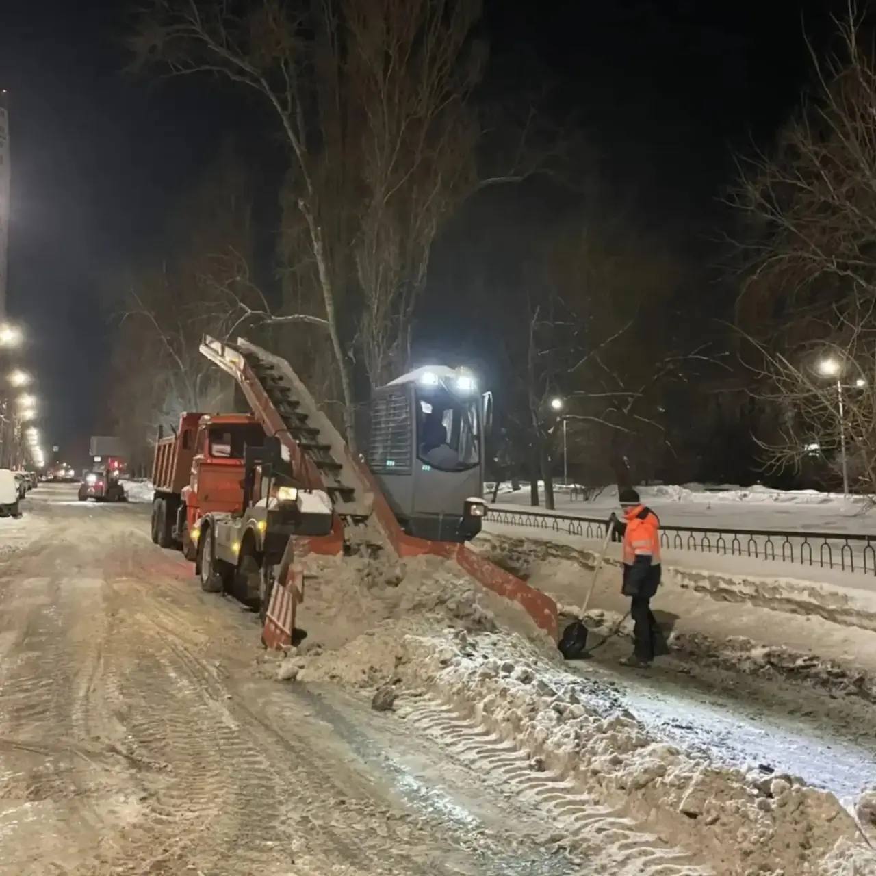 В Энгельсе вночные часы продолжались работы по уборке снега с улиц города.
