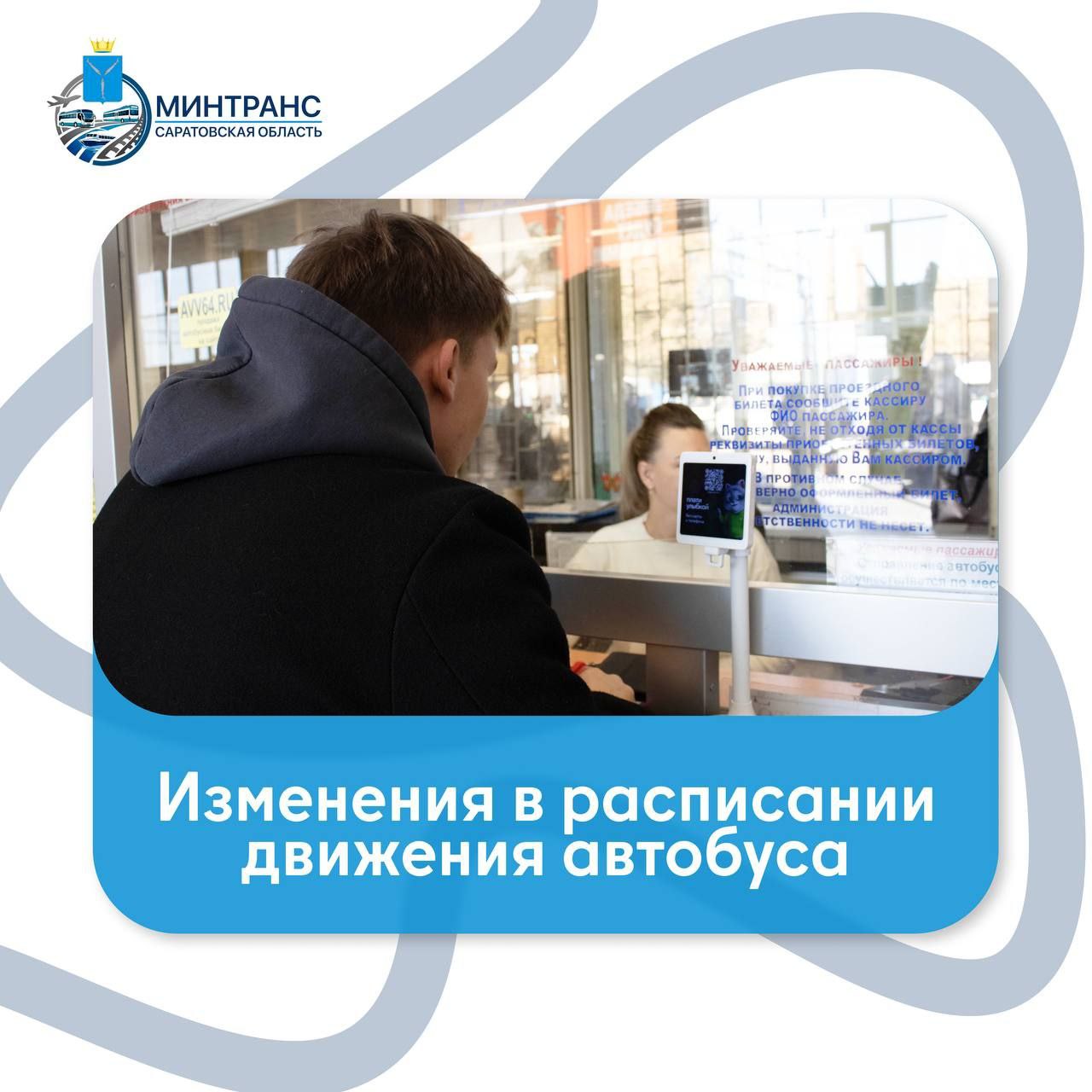 По обращениям пассажиров принято решение о внесении изменений в расписание межмуниципального автобусного маршрута № 350 «Саратов (Стадион Волга) – Михайловка».