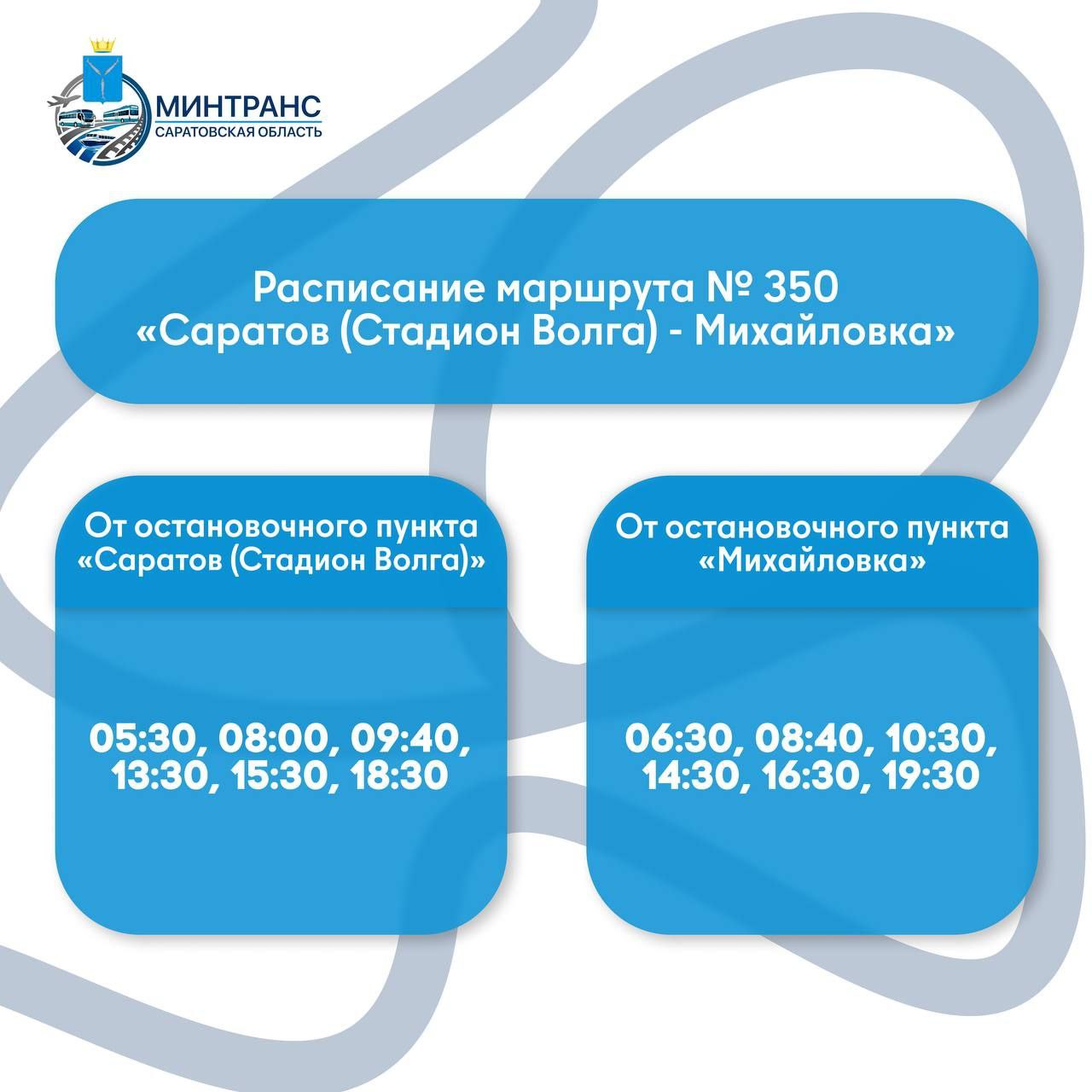 На маршруте № 350 «Саратов (Стадион Волга) – Михайловка» вводятся дополнительные рейсы