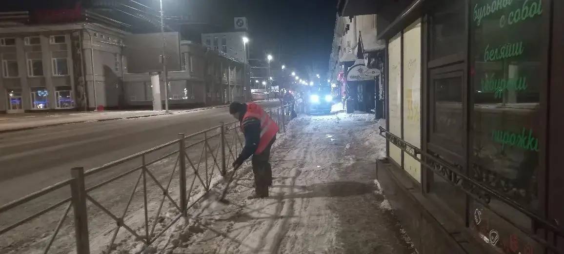 Коммунальные службы ведут расчистку и обработку противогололедными материалами проезжих частей и пешеходных зон. Особое внимание уделяется комплексной очистке территорий, прилегающих к остановочным павильонам и социальным объектам.