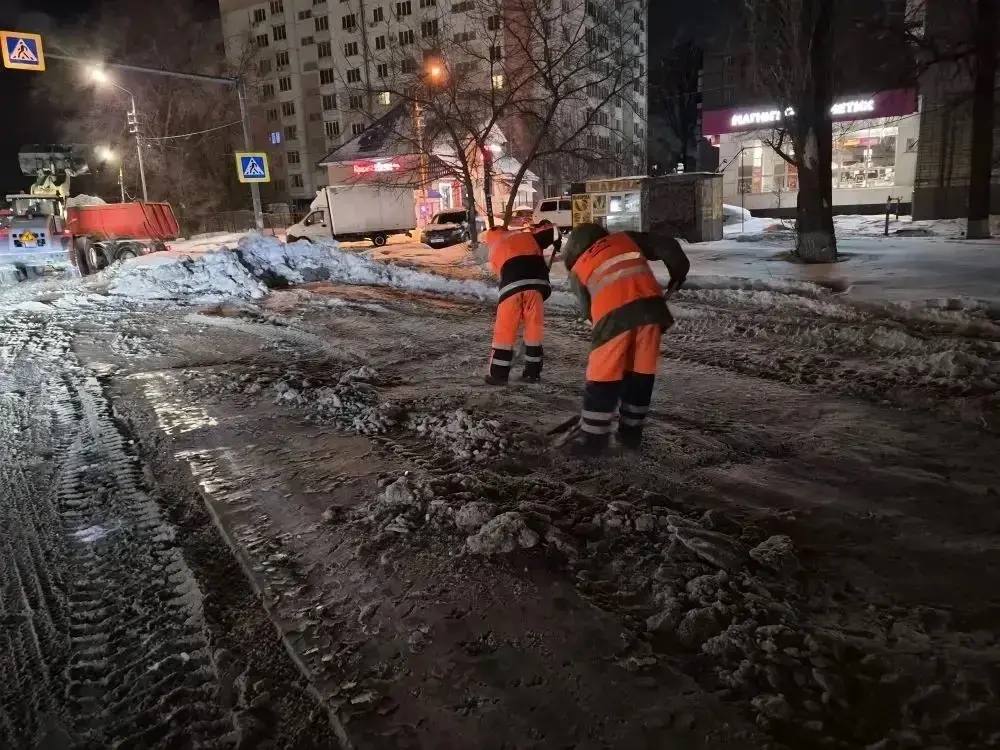В течение ночи коммунальные службы города проводили работы по уборке снега
