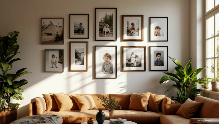 Чтобы оживить стены, повесьте на них то, что имеет к вам отношение. Забудьте о серийных репродукциях. Соберите коллекцию фотографий в разных рамках: пейзажи, старые городские кадры, портреты друзей. Развесьте их асимметрично, добавляя динамику. Рядом можно поместить детский рисунок или вашу первую акварель. Так стены станут вашей личной галереей.
