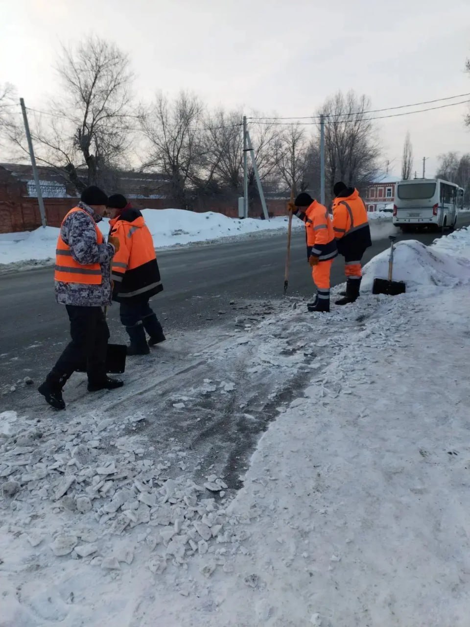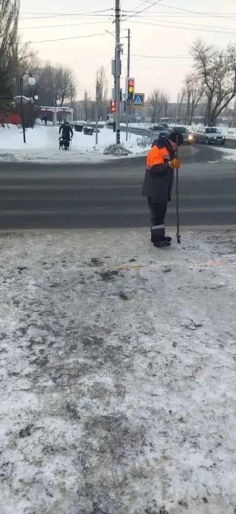 Рабочие вручную будут расчищать подходы к пешеходным переходам и территории остановок, а также обрабатывать противогололедными средствами опасные участки дорог.