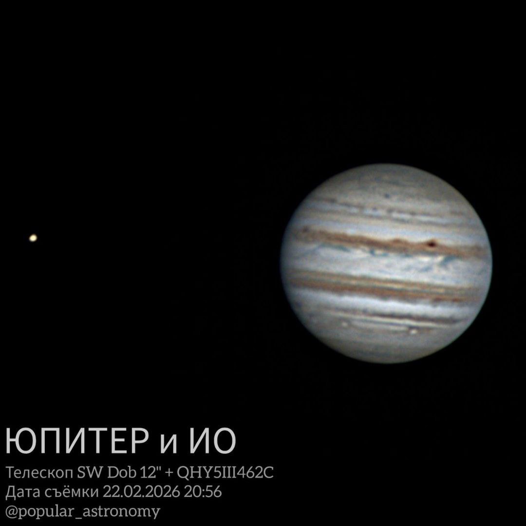 Прямо в саратовском дворе кандидат технических наук Юрий Кумаков запечатлел Юпитер и его спутник Ио.