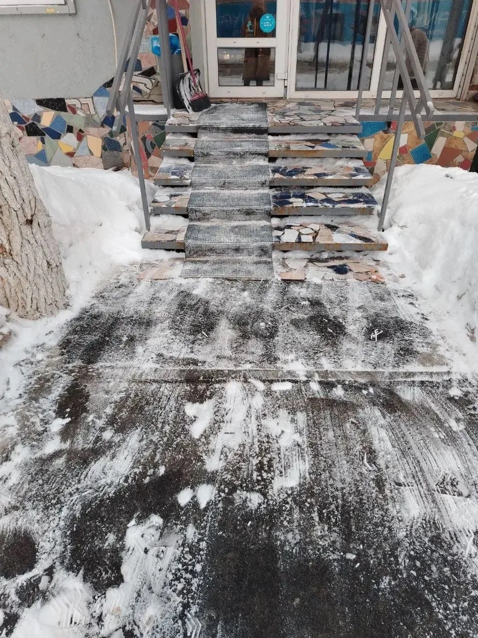 Владельцы объектов на улицах Тельмана, М. Горького, М. Василевского и Студенческой и других оперативно приступили к уборке и обработке прилегающей территории противогололедными материалами, также сотрудники очищали крыши от наледи и сосулек.