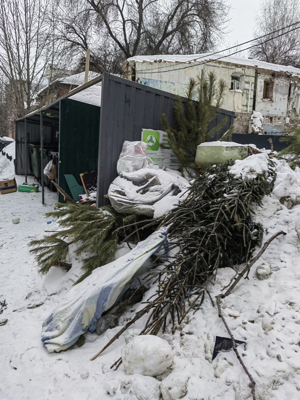 На ул. Дзержинского, 2 обстановка сложилась не лучше. Со слов подписчицы, крупногабаритный мусор там не вывозят с начала января.
