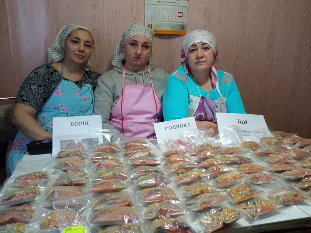 Всего было сформировано 130 порций сухих суповых наборов. В ассортименте – традиционные борщ, рассольник, харчо, сытные щи с квашеной капустой, а также суп с фасолью и грибами.