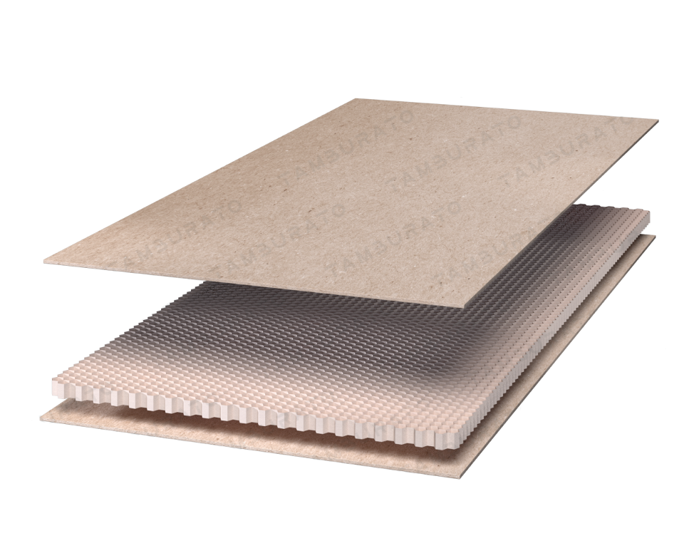 Тамбурат – это композитный плитный материал, состоящий из внешних слоев (плит) с внутренним сотовым наполнителем, выполненным из картона. В качестве внешних компонентов чаще всего используются древесные плиты, такие как МДФ, ЛДСП или ХДФ.